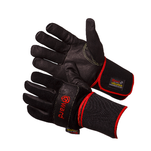 Описание перчаток: Антивибрационные кожаные перчатки со вставками из спилка и высокой крагой-напульсником из эластичной ленты.