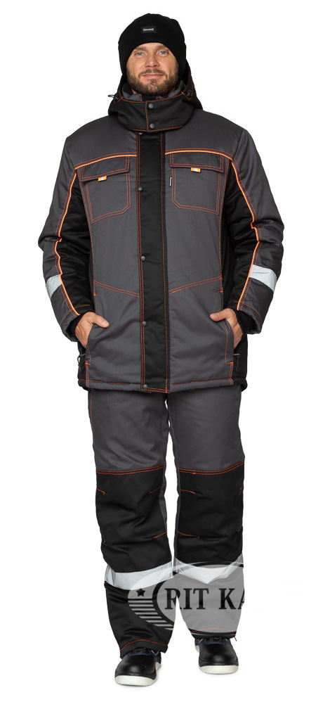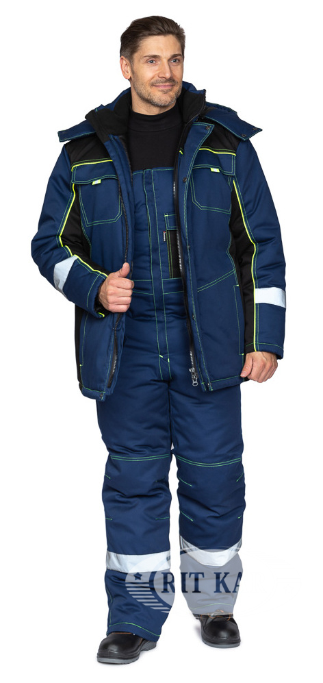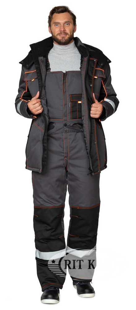 Костюм утепленный «Бренд К» — это модель, состоящая из куртки с капюшоном и полукомбинезона, выполненных в прямом крое, отличается хорошими эксплуатационными характеристиками. Рабочий зимний костюм — универсальный вариант, который подходит для производственной, коммунальной, строительной и других сфер.