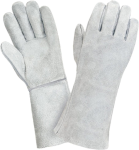 Краги пятипалые из мягкого спилка кож КРС, серые, предназначены для защиты рук от: повышенных температур, механических воздействий, загрязнений.