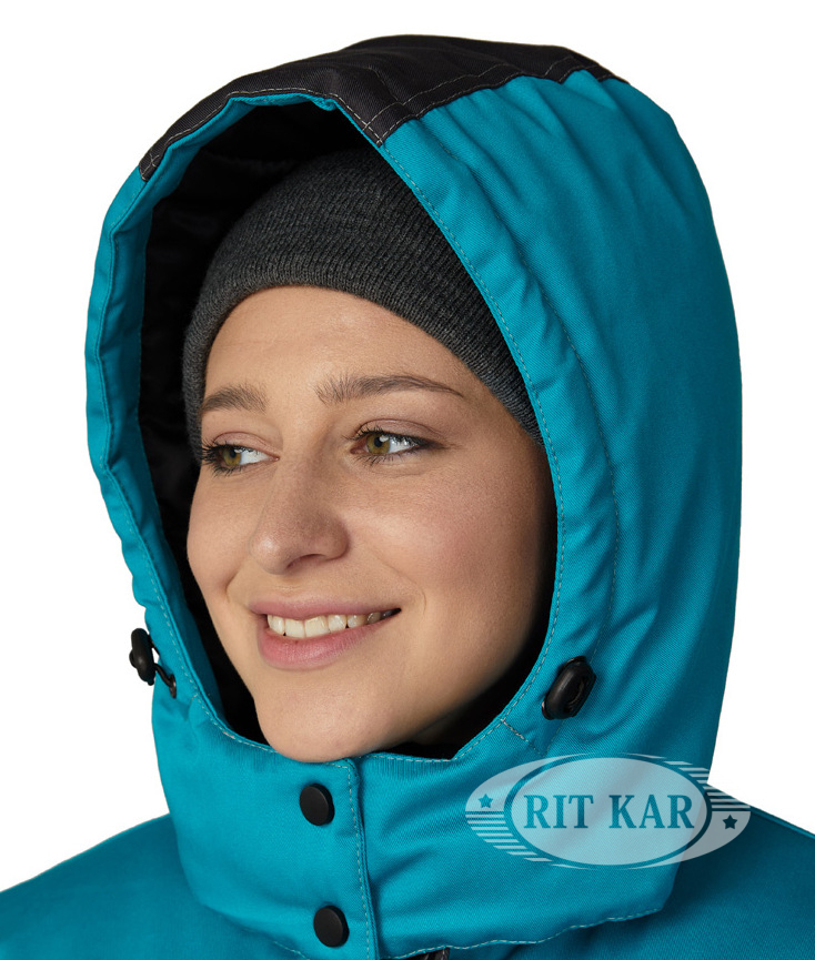 Капюшон: съёмный, с притачной утеплённой подкладкой, с застёжкой на кнопки. Капюшон пристёгивается к верхнему воротнику на молнию, закрытую планкой. Регулировка глубины возможна с помощью хлястика на затылочной части, застёгивающегося на контактную ленту. По лицевому вырезу кулиска с эластичным шнуром и фиксаторами обеспечивает возможность регулировать капюшон по объёму. Подбородочная часть широкая, застёгивается на контактную ленту.