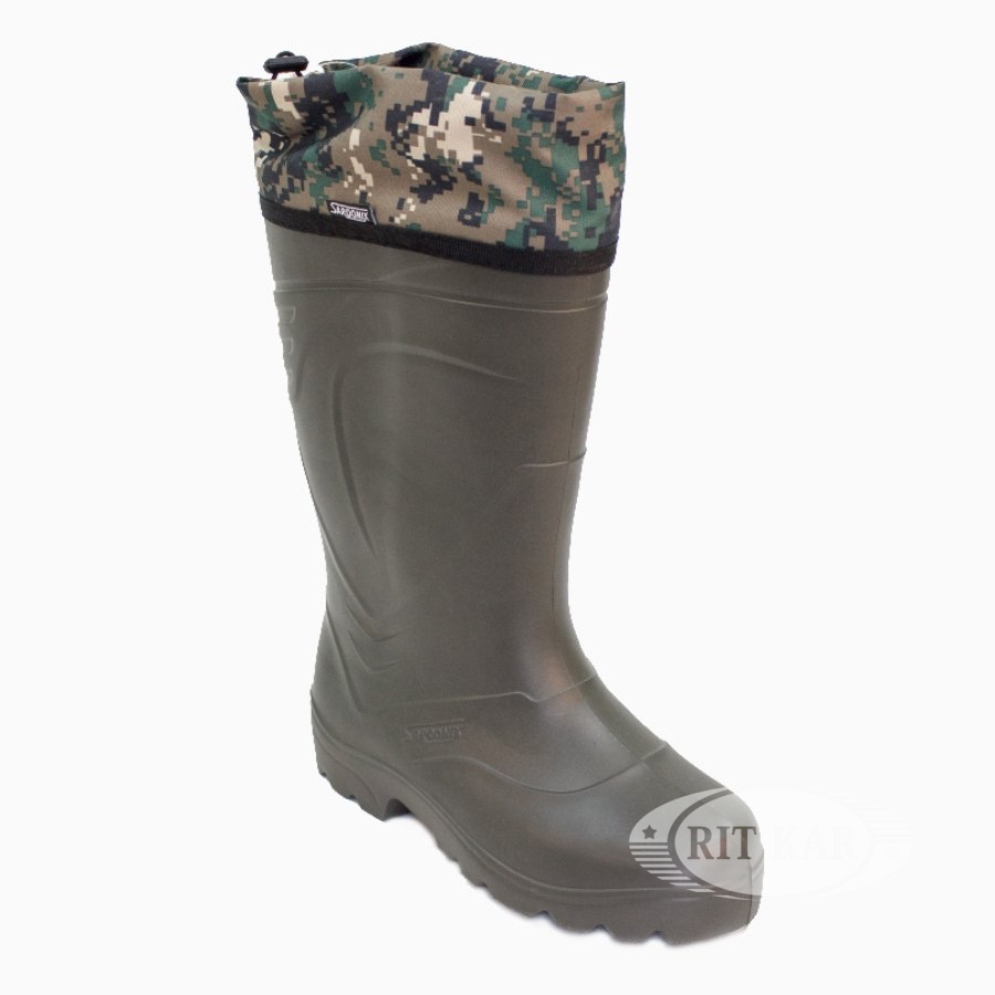 Сапоги выполнены из современного материала — этиленвинилацетата (ЭВА). Обладают высокой степенью теплоизоляции — сохраняют тепло и защищают от проникновения влаги, легче аналогов из ПВХ на 40% — вес 700 гр. Обеспечивают безупречный комфорт при ходьбе. Рассчитаны на экстремальные условия эксплуатации.
