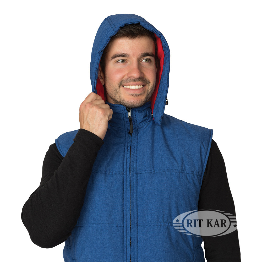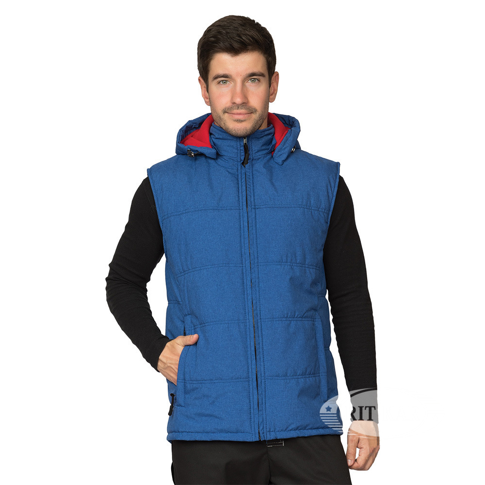 Жилет мужской утепленный — стильная функциональная модель жилета для мужчин с улучшенными характеристиками кроя и фурнитуры. Ткань и новое сочетание цвета придаёт изделию оригинальный внешний вид. Съёмный капюшон с регулировкой по объёму и глубине, воротник-стойка и флисовая подкладка обеспечат удобство при эксплуатации. Такую модель жилета с капюшоном можно использовать в качестве верхнего слоя одежды или в качестве дополнительного утепляющего слоя одежды, если отстегнуть капюшон.